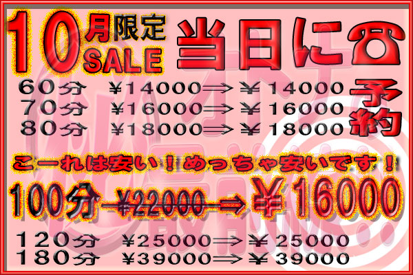 ☆彡10月だけ限定/100分コースのみ【¥6000割引(゚Д゚;)安っ】で遊ぼう♪