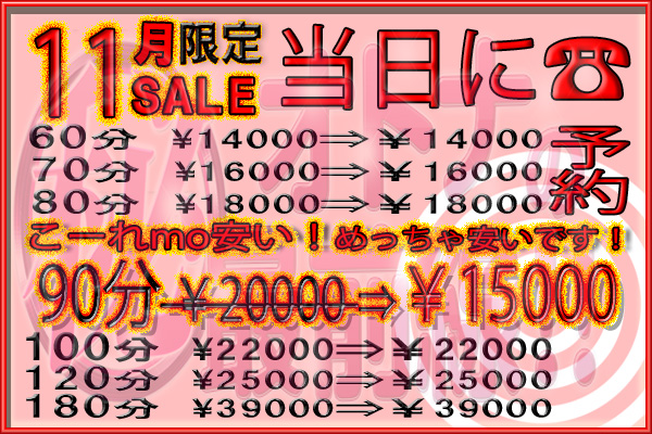 (=゚ω゚)ノ「11月だけ限定の90分コースで♪」